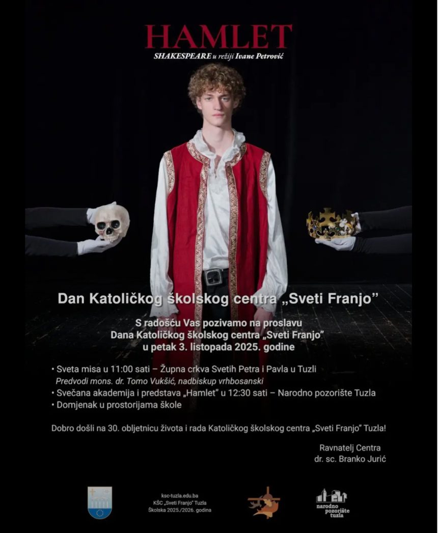Nakon svete mise slijedi svečana akademija i predstava “Hamlet”, u 12:30 sati u Narodnom pozorištu Tuzla.